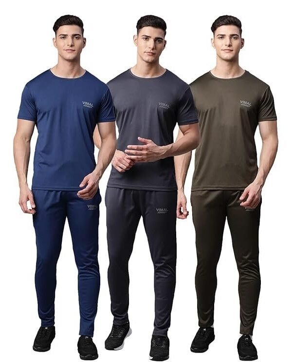 Mack Jonney Men Polyester Blend MACK Jonnney Dryfit Solid Lycra Tracksuit Co-Ord Sets (Pack Of 3)-Dryfit_T_D10_Blu_Gry_L.Gry_06-P