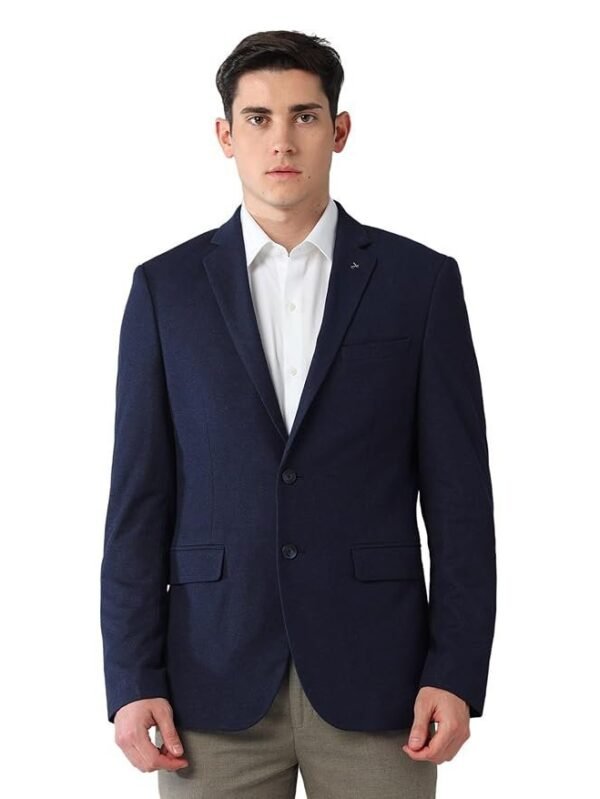 Arrow Men's Blue self-Design Notch Collared Long Sleeve Formal Polyester Slim Fit Blazer