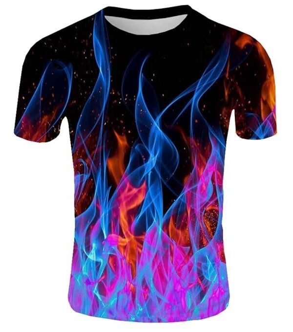 Sunward Men T-Shirt,Men's New Summer T-shirt With Round Neck Short Sleeve Blue Flame 3D Printed Top