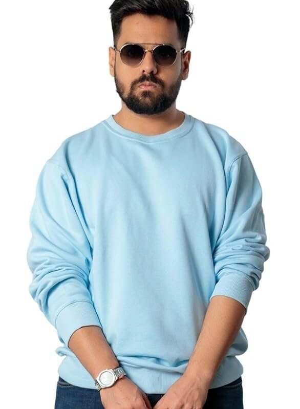 Todo BASIQUE Mens Cotton Ribbed Round Neck Full Sleeve Sweatshirt | Baggy Crew