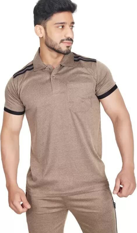 Vastragrah Cotton Blend Night Suit Co-ord Set for Men with Coller Half Sleeve T-Shirt and Track Pant | Nightdress Suits Set | Co-ords Brown, XXL