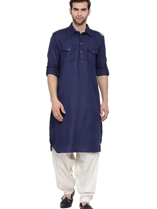 VASTRAMAY Men's Cotton Blend Pathani Kurta Set || Stylish Pathani Style Kurta with Roll Up Sleeves and Relaxed Fit Patiala Salwar