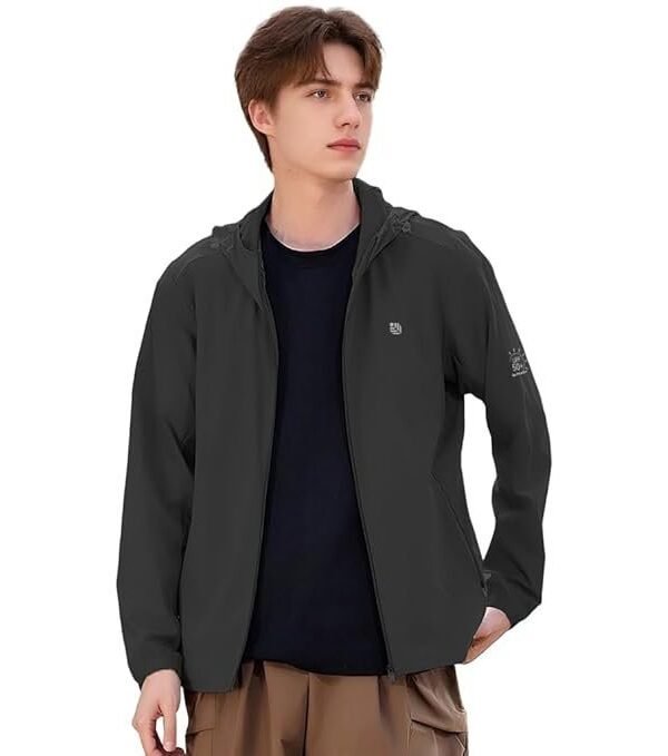 Venzina® UPF 50+ Sun Jacket for Men Long Sleeve Zip-up Sun Jacket with Zip Pocket, Removable Hat, Quick Dry Loose-fit UV Protection Clothing for Driving, Riding, Hiking