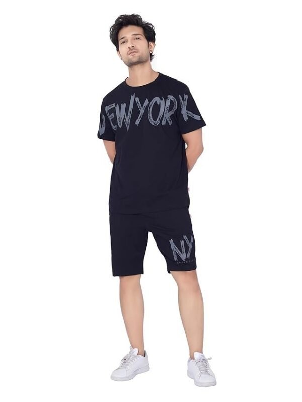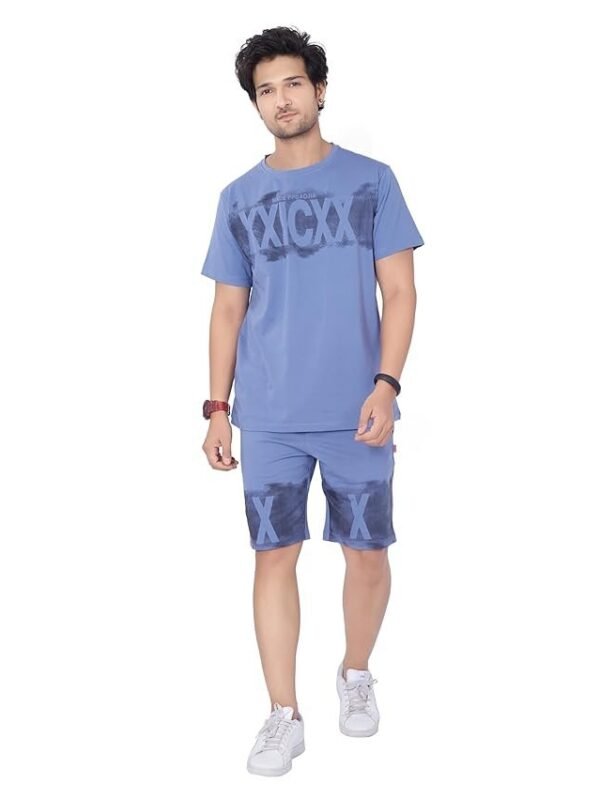 WEET Cotton Round Neck Co-ord Set for Men's Half Sleeve T-Shirt and Shorts, Printed Casual Sleepwear & Loungewear Night Suits Set 117