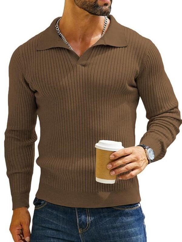 DENIMHOLIC Men's Cotton Full Sleeve Collar Polo Sweater for Men, Rib Knitted Sweaters for Men Winter