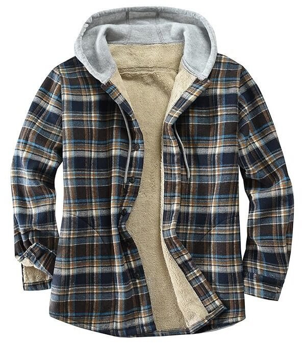 Derbars Men's Cotton Plaid Shirts Jacket Fleece Lined Flannel Shirts Sherpa Button Down Jackets with Hood for Men